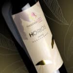 Design grafica etichetta vino per bottiglia troncoconica. Il progetto grafico di questa etichetta prevede una trama geometrica di sfondo che simula delle foglie di colore più chiaro. Una etichetta vino moderna, con effetti di stampa in oro a caldo colato sul logo e sui pallini che decorano tutta l’area frontale, in più è stata aggiunta una verniciatura lucida a spessore (braille) sul fiore del logo e su alcune parti della trama di sfondo. Per la stampa di questa etichetta vino è stata utilizzata una carta con plastificazione soft touch per dare un effetto di morbidezza a tutta l’etichetta valorizzandone così gli effetti di stampa utilizzati.