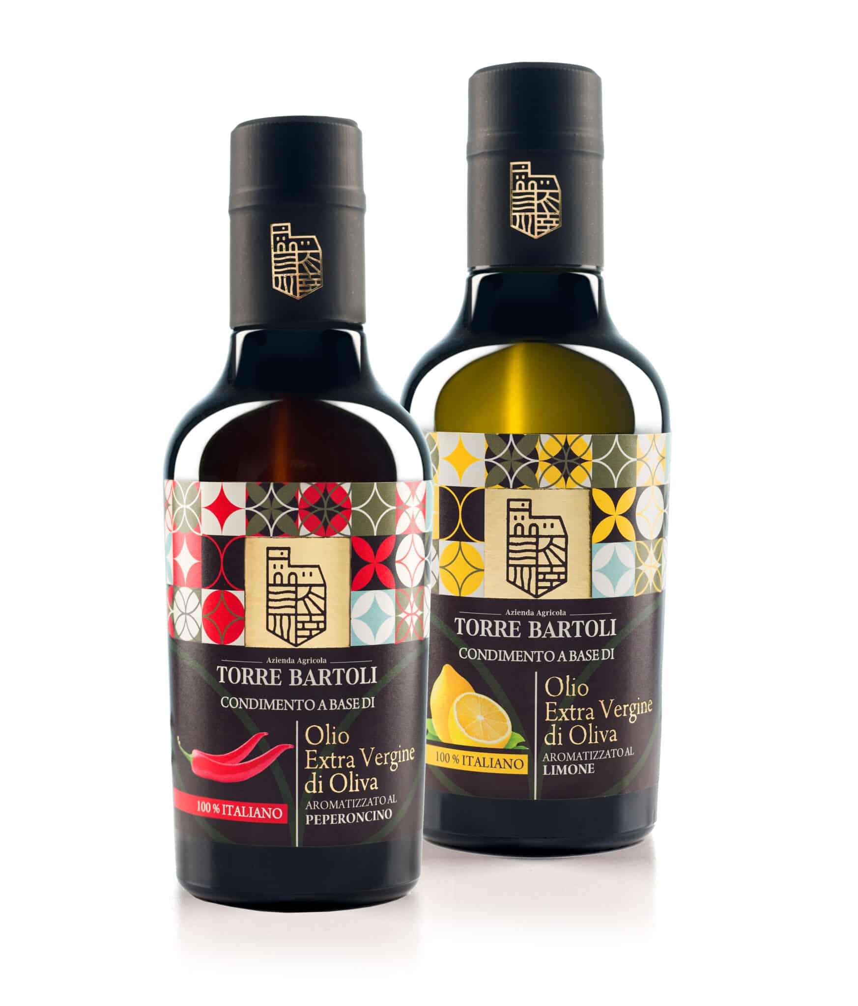 Grafica etichetta olio aromatizzato Azienda Torrebartoli Torchiarolo (Br)