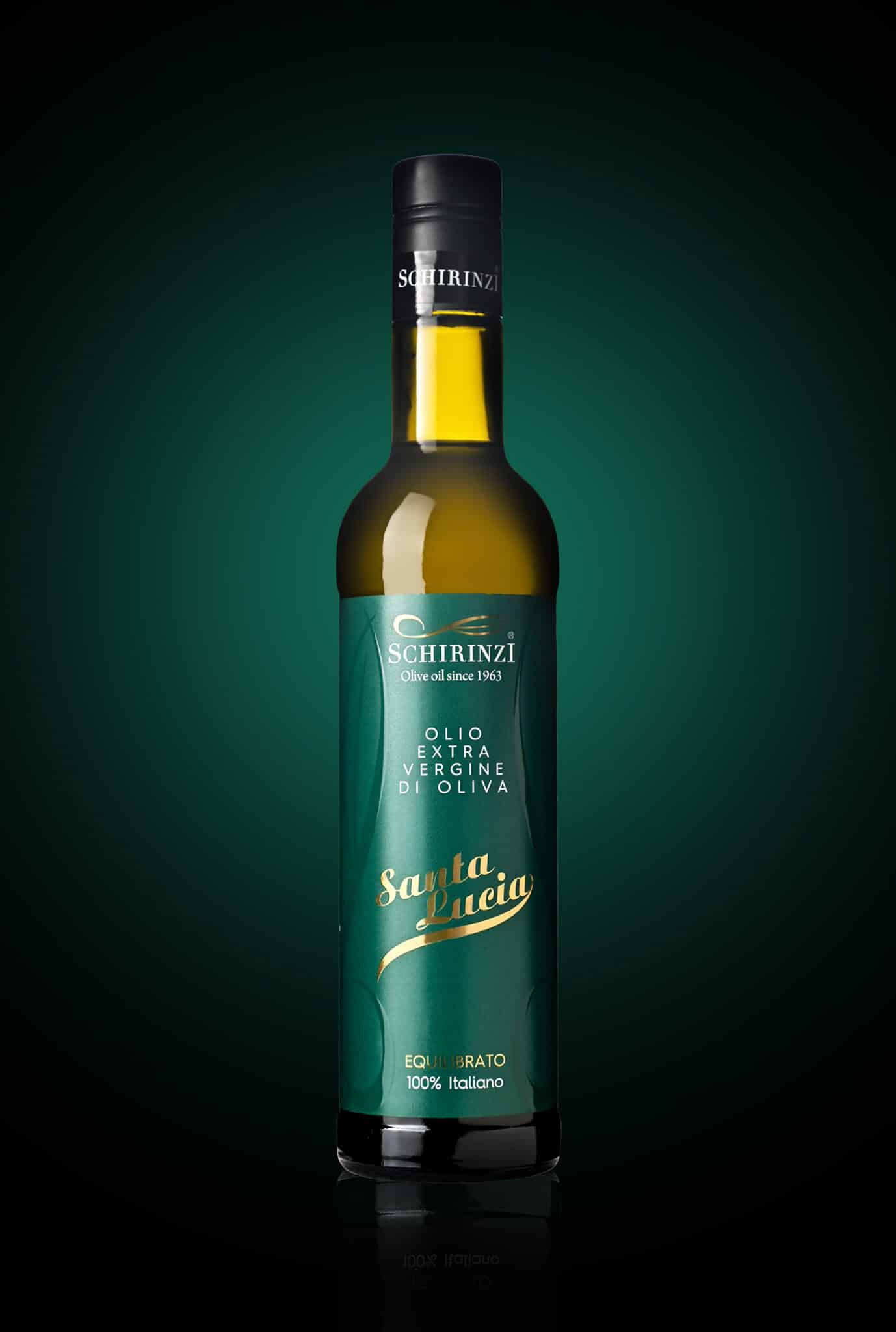 Design etichetta per due bottiglie di Olio Boschino e Santa Lucia per Azienda Olearia Schirinzi.