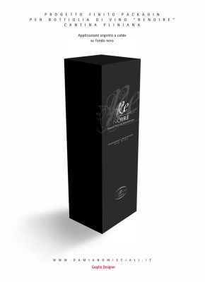 Studio e realizzazione di un Packaging per bottiglia di vino. Altezza 33 cm per 8 cm di base, fondo nero con testi bianchi, nome vino e logo in argento a caldo lucido. Plastificazione opaca per dare risalto all’argento a caldo.