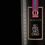 Progetto grafico di una etichetta per Olio Extra Vergine di Oliva su bottiglia dorica. L’etichetta è stata progettata in stile moderno con  effetti di stampa di oro a caldo lucido e verniciatura braille Sulla “G” del marchio che  si ripete più volte nella parte centrale.